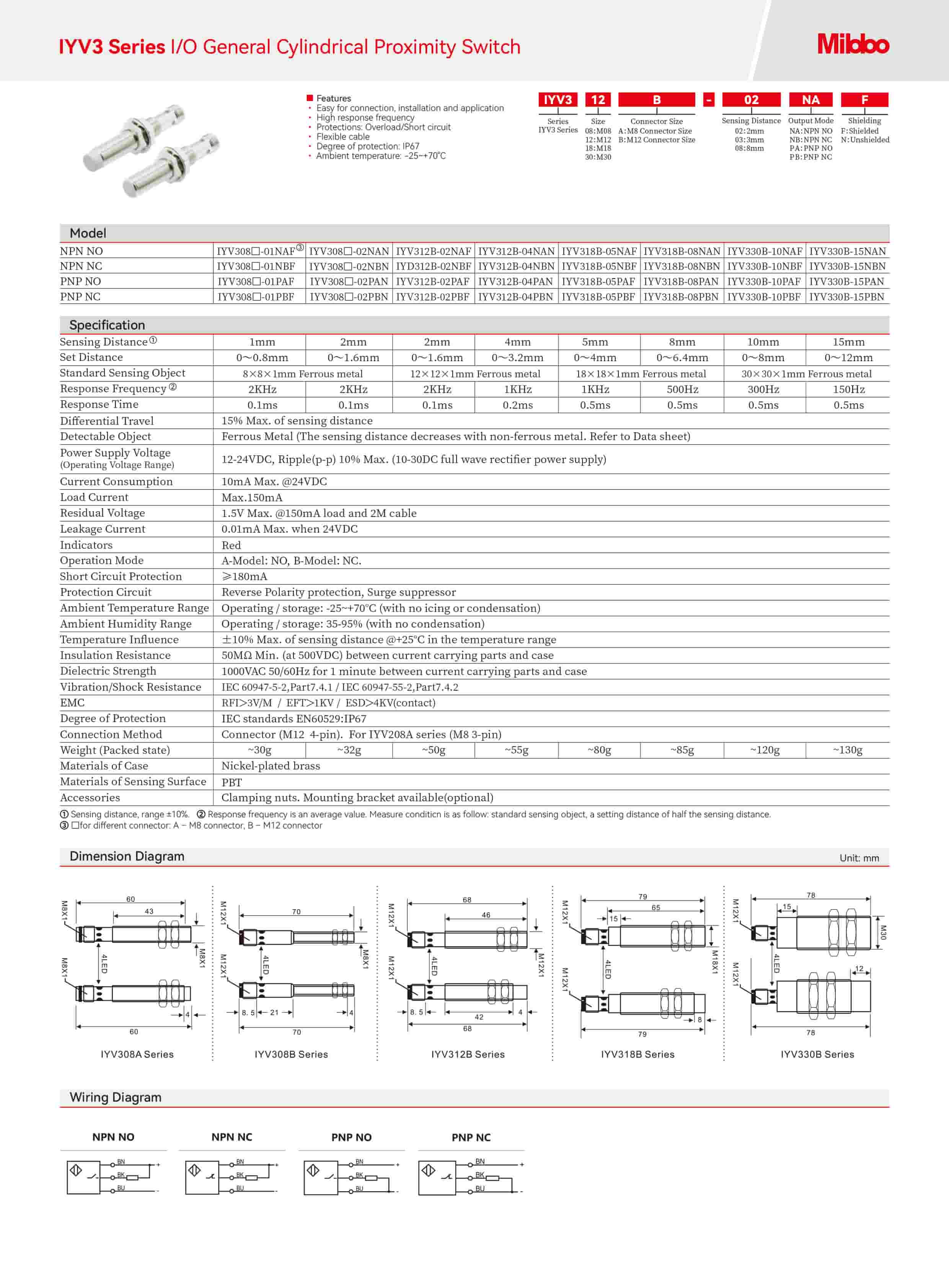 IYV3 Series I/O General Cylindrical Proximity Switch